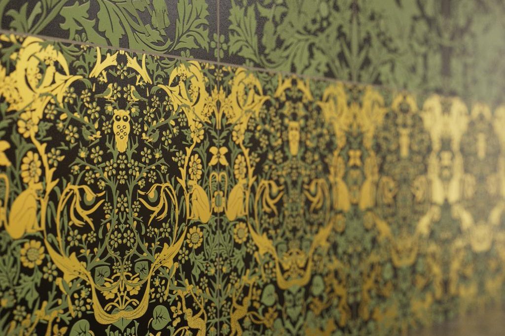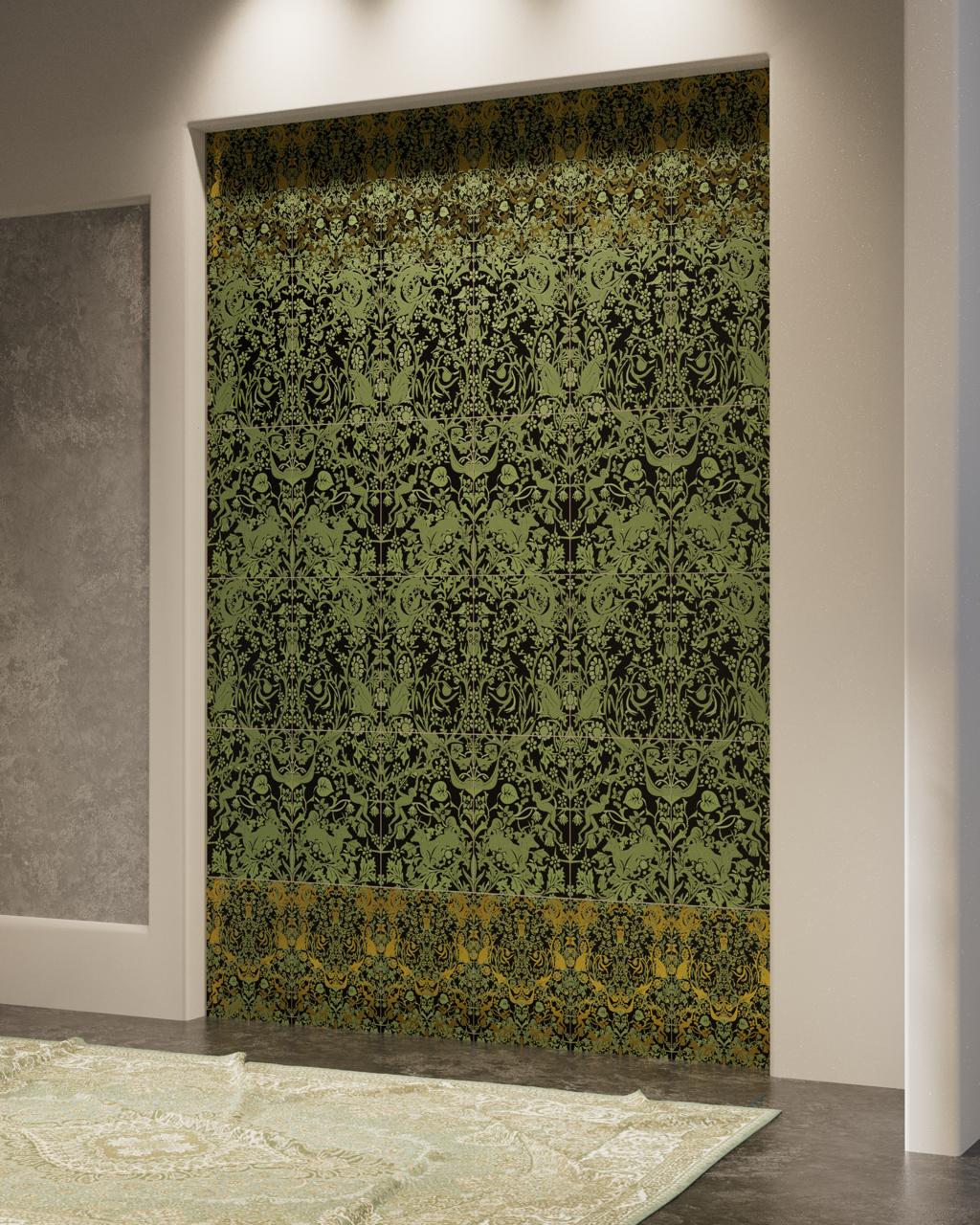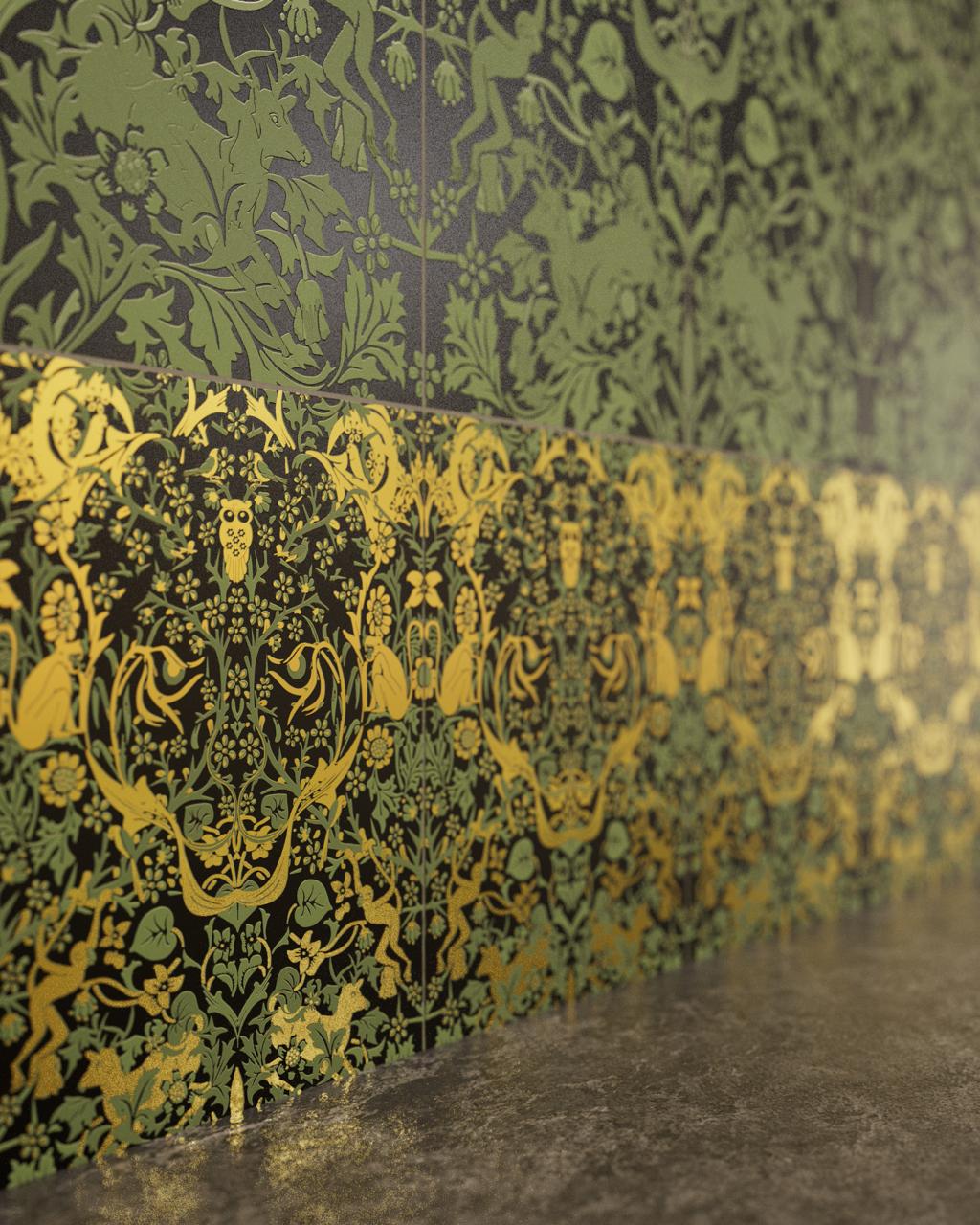This collection draws inspiration from the works of William Morris and the Arts and Crafts movement, which emphasized intricate patterns and fine craftsmanship. We’ve taken that philosophy and adapted it into something modern—tiles that create dreamlike landscapes,revealing hidden details as you view them from different angles.