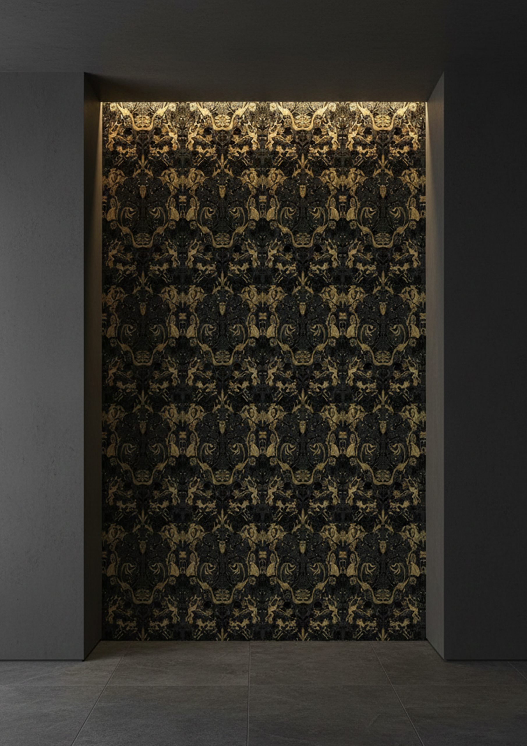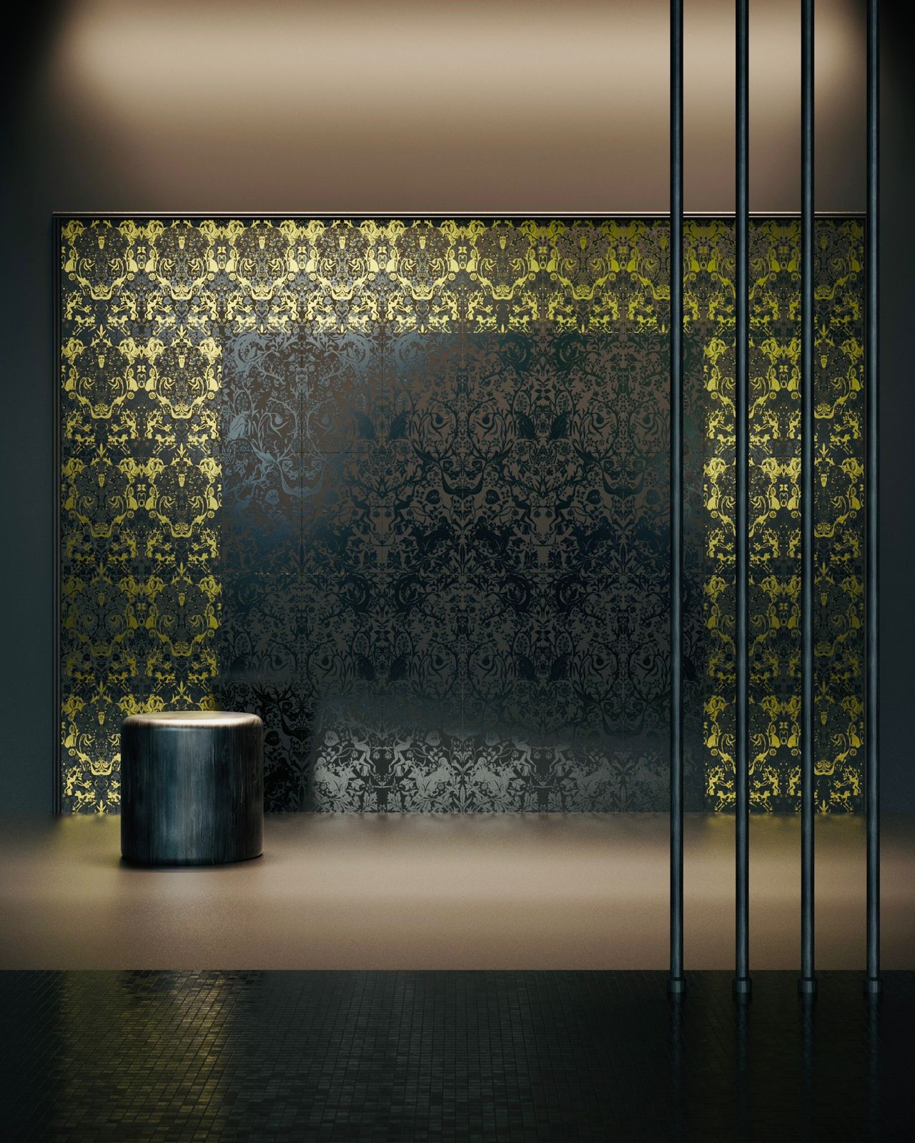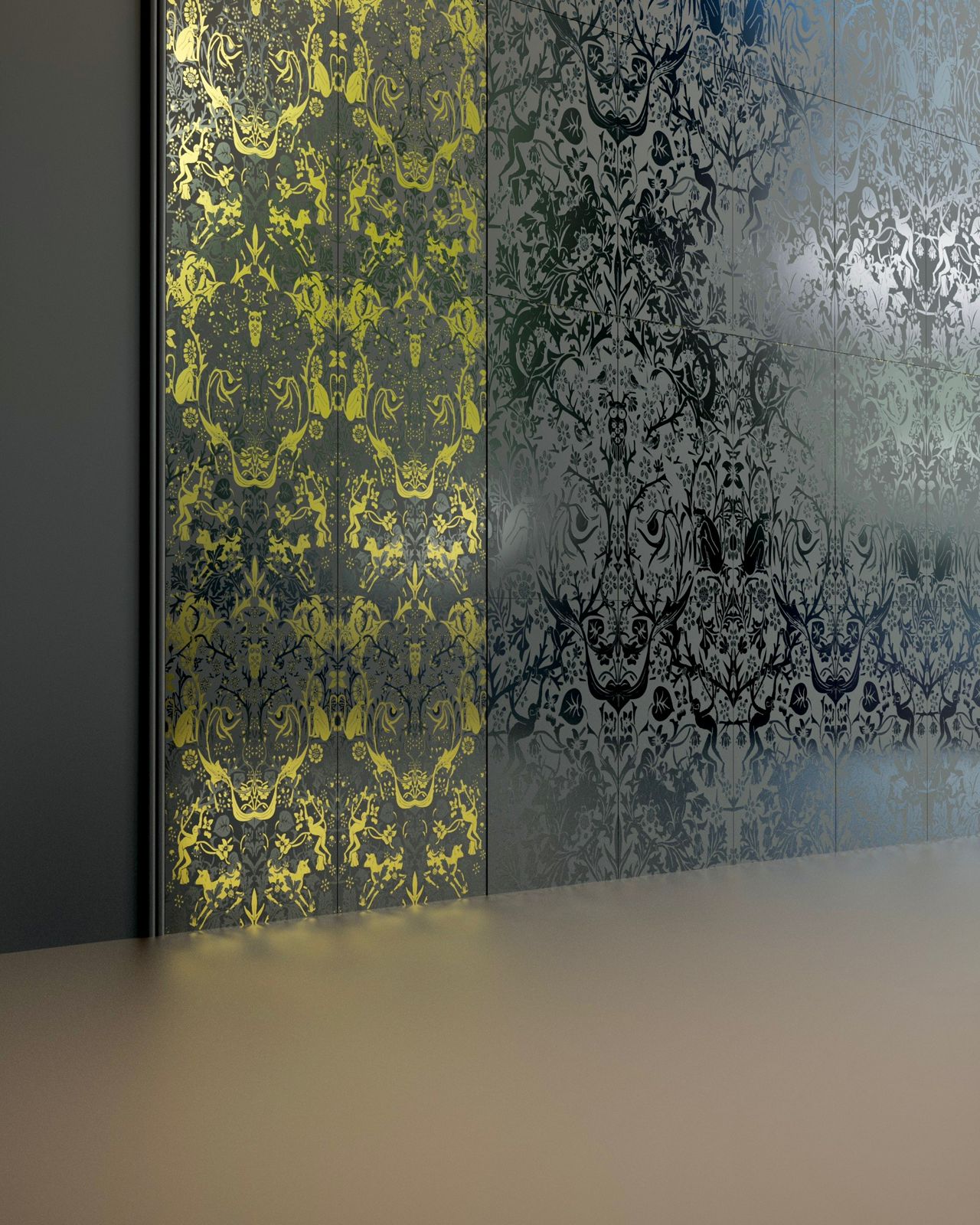 This collection draws inspiration from the works of William Morris and the Arts and Crafts movement, which emphasized intricate patterns and fine craftsmanship. We’ve taken that philosophy and adapted it into something modern—tiles that create dreamlike landscapes,revealing hidden details as you view them from different angles.