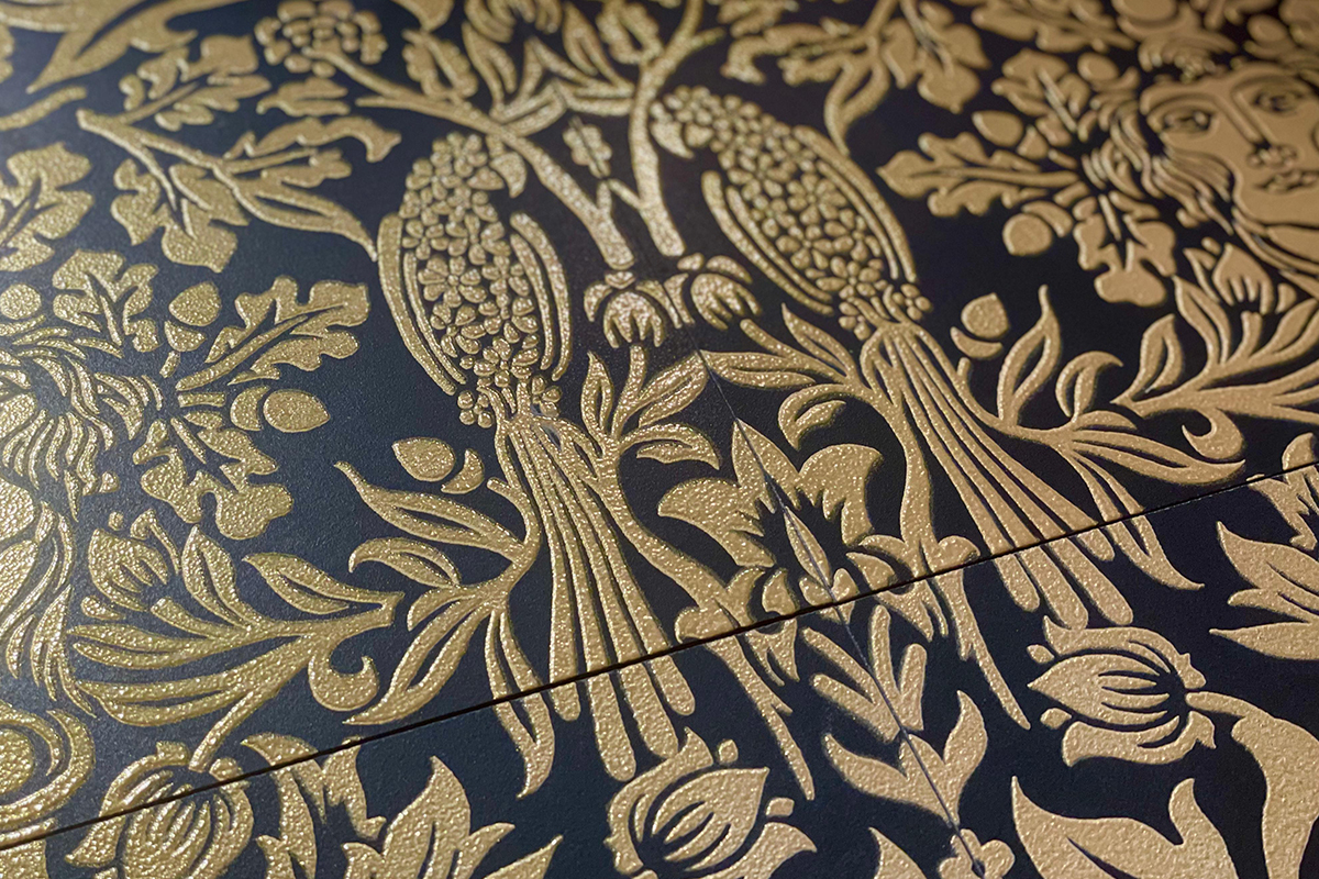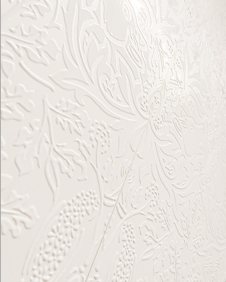 This collection draws inspiration from the works of William Morris and the Arts and Crafts movement, which emphasized intricate patterns and fine craftsmanship. We’ve taken that philosophy and adapted it into something modern—tiles that create dreamlike landscapes,revealing hidden details as you view them from different angles.