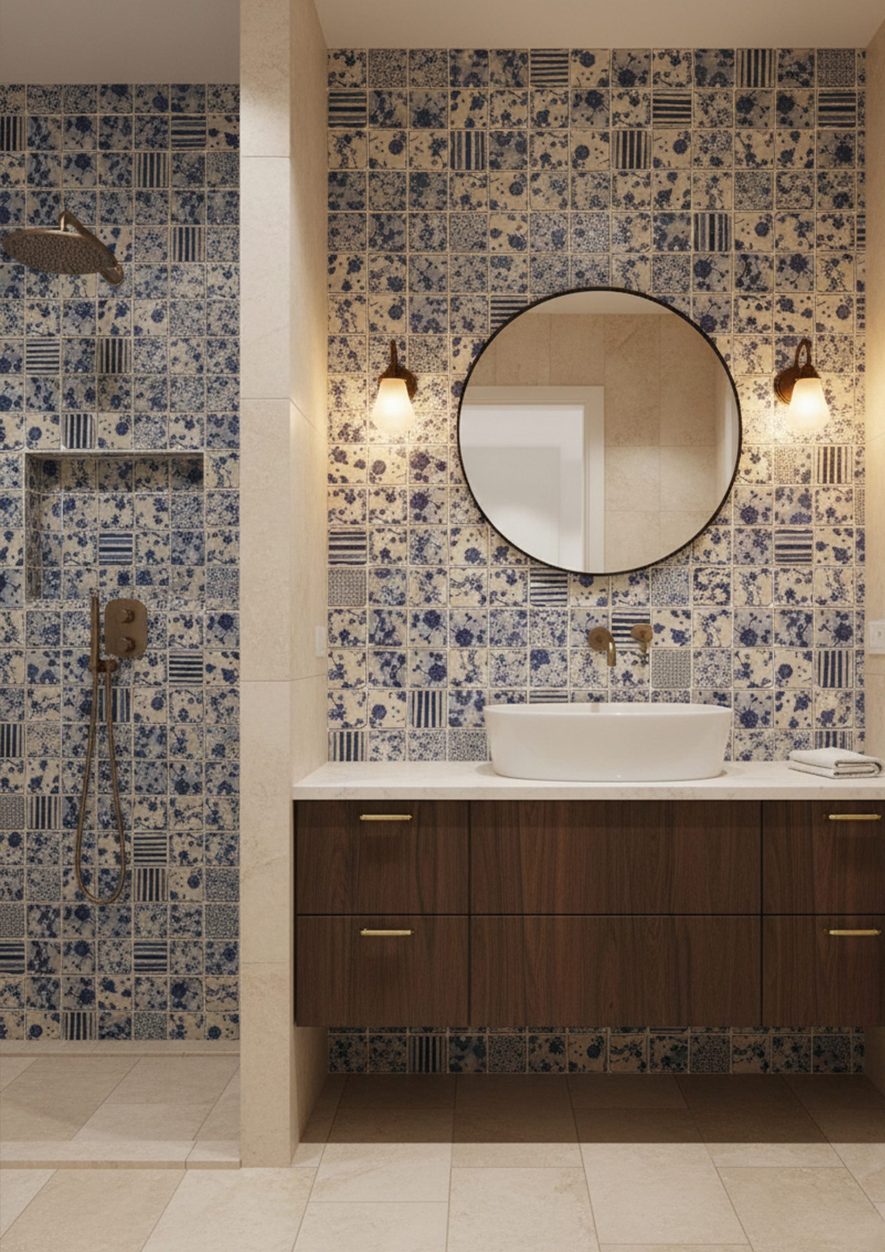 These bespoke walls and floors have been created in stoneware porcelain by an amalgamation of art, ceramic techniques and design. We have recast this historical surface into a new design avatar which is extremely versatile and timeless. We have experimented with unique and unusual techniques, taking innovation to it’s threshold, with a look that has never been seen before.