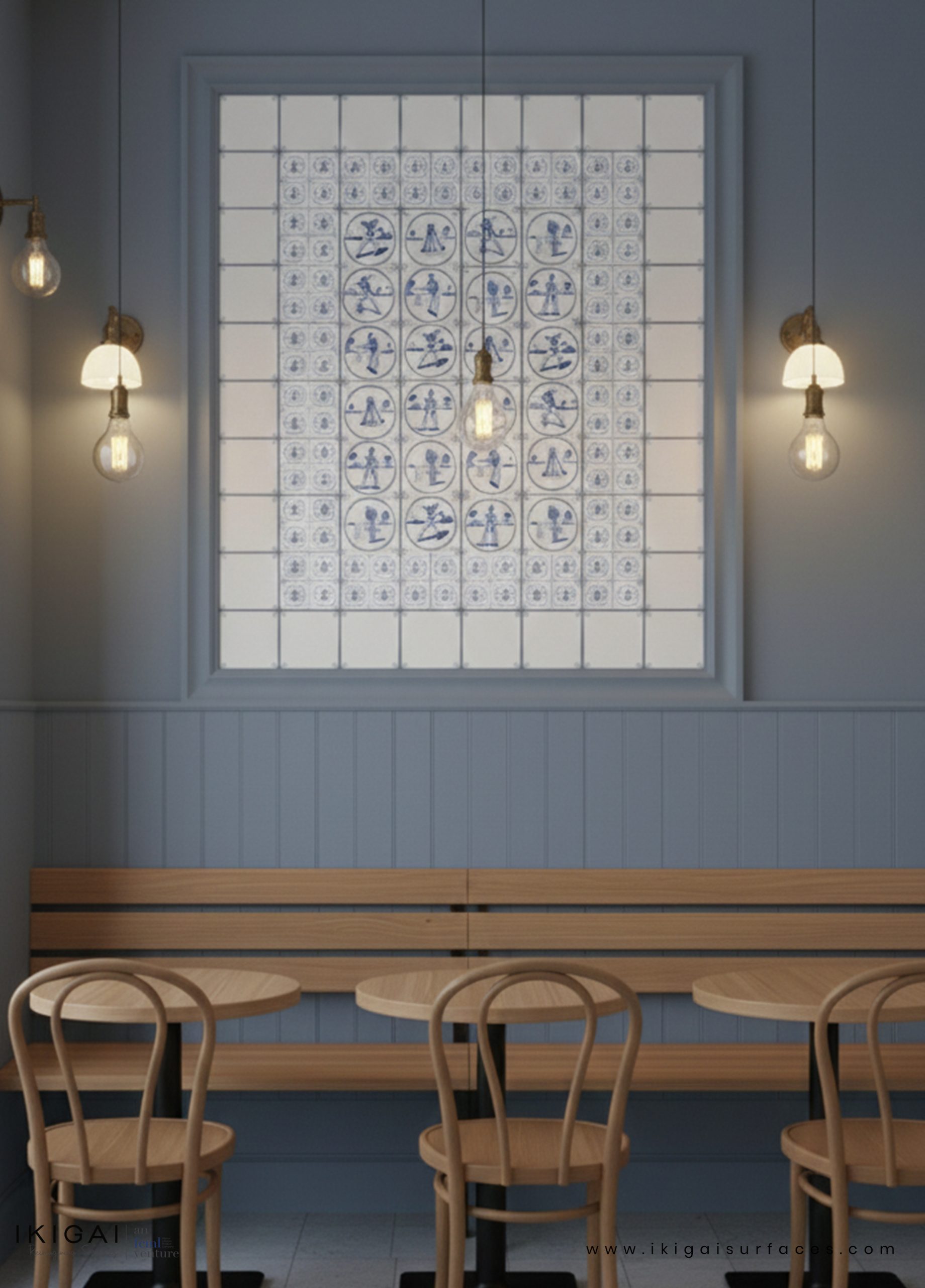 This fresh and delicate tile collection brings to life a pleasant summer day on the village cricket field, with batsmen merrily playing and sipping tea between overs. The intricate artistry of each tile draws you into the scene, allowing your imagination to conjure images of balmy days spent outdoors while capturing a moment that serves as an ode to simpler times.