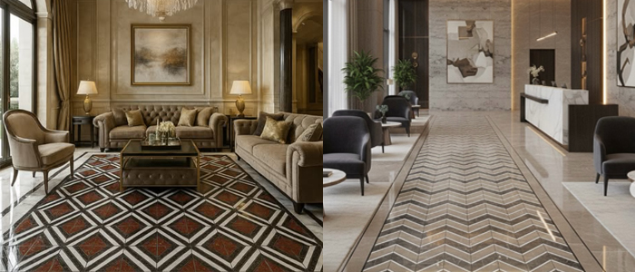 The Imagine Series reimagines Nara Marble by experimenting with different base tiles, unlocking fresh possibilities for creative design. Inspired by the traditional flooring patterns of Rambagh Fort, this porcelain collection revives the elegance of marble mosaics while offering the ease of modern installation through preplanned mesh systems. With its rich blend of textures, shades, and patterns, Nara Marble extends the beauty of ornate interiors into contemporary spaces, adaptable for floors, walls, carpet inserts, and borders.